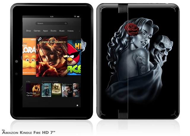 Two Face with Rose Decal Style Skin fits 2012 Amazon Kindle Fire HD 7 inch